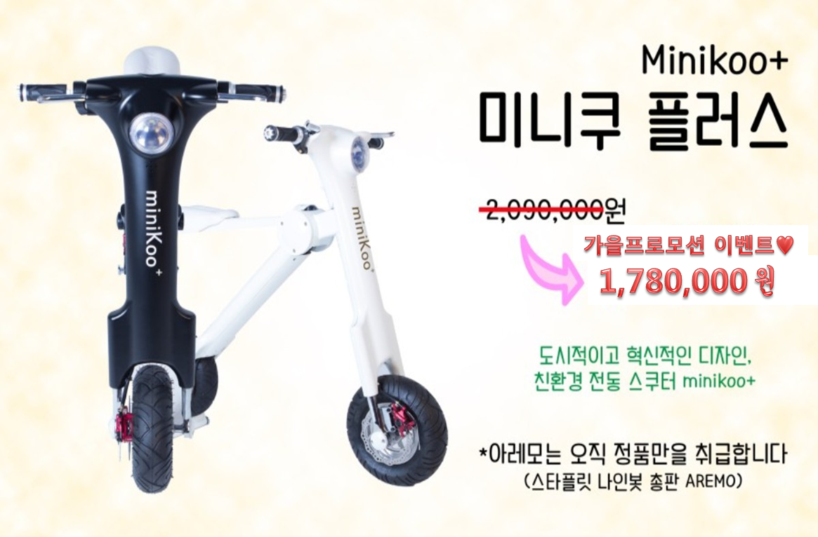 ★☆★미니쿠 -> 미니쿠+ 스펙★☆★ 48V 11ah 리튬폴리머 중국산 배터리에서 -> 48V 10.4ah 삼성SDI 리튬이온 배터리로 변경 내구성과 주행거리 증가,주행거리20~25km -> 25~30km 로 변경 내부 모터와 배터리를 제어하는 컨트롤러 내구성 강화 차체 프레임 개선 , 색상이 블랙과 화이트 선택 가능 결제시 색상을 알려주세요!!!(블랙,화이트)
