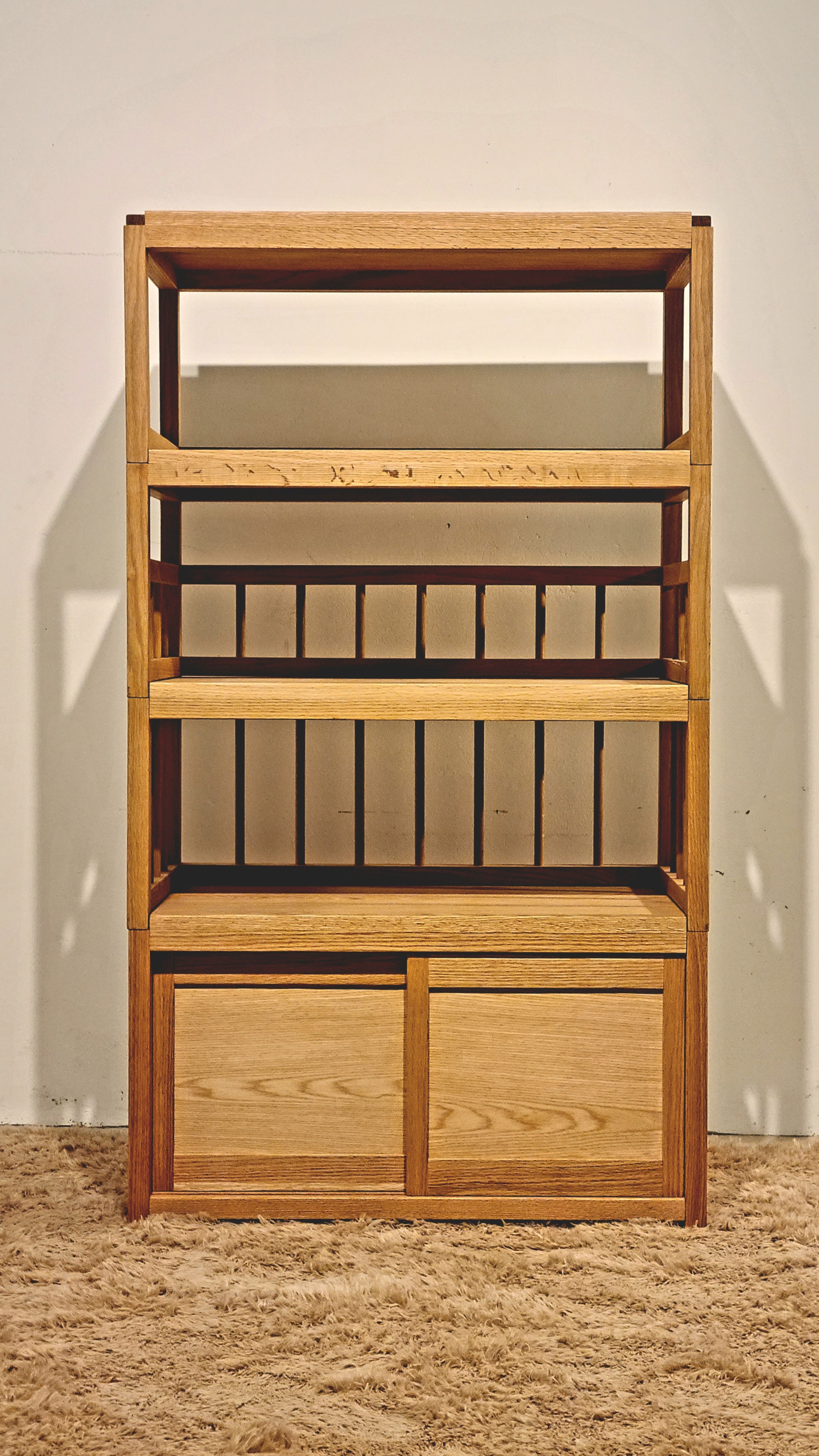 하모니 쉘프 삶이 먼저 오고, 가구는 그다음에 놓입니다. 하모니 쉘프는 사용법을 강요하지 않는 구조, 시간이 지나도 바뀌지 않는 선택. 당신의 방식대로 살아도 괜찮다는 하나의 공간적 제안입니다. 크기: 664(가로) x 400(세로) x 1400(높이) mm 재질: 프리미엄 월넛, 레드오크, 레드오크 합판 친환경 코팅: LIBERON FINISING OIL로 단단한 코팅층 제공, 내구력과 내수성 강화 유럽 환경 마크 획득: 엄격한 환경 기준을 충족한 제품 -