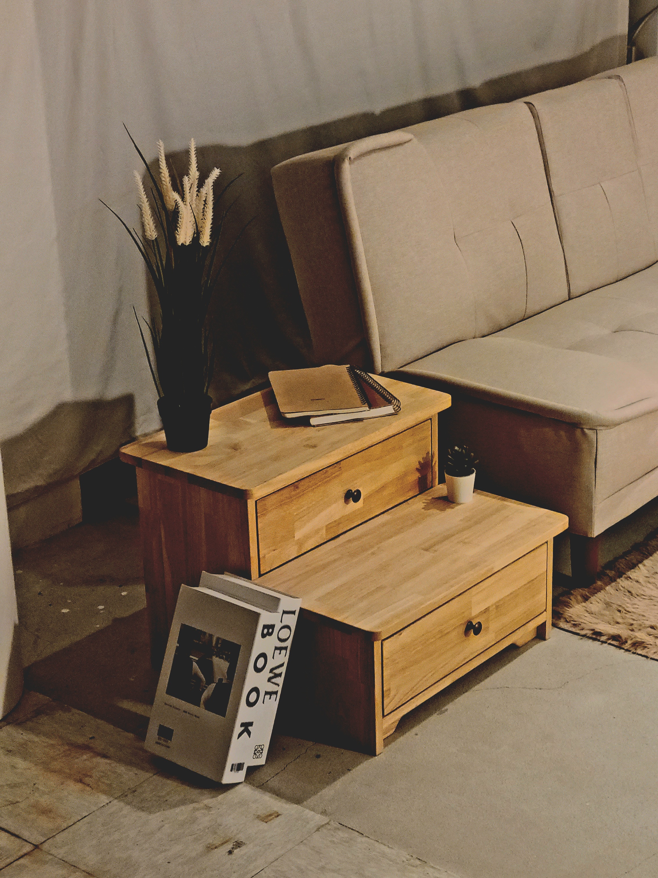스텝앤드 (Step&) – 계단 이상의 가능성, 공간의 경계를 넘다 – "계단이 수납장이 되고, 인테리어 오브제가 되는 순간" 스텝앤드는 단순한 계단을 넘어 공간의 한계를 재정의하는 다기능 가구입니다. size 545(가로)x544(세로)x400(높이) material 고무나무, 고무나무 합판, 미송(내부 서랍재) USE Oil : LIBERON FINISING OIL 단단한 코팅층을 제공하여 내구력과 내수성이 뛰어납니다. (엄격하고 까다로운 유럽 환경 마크를 획득한 제품) -