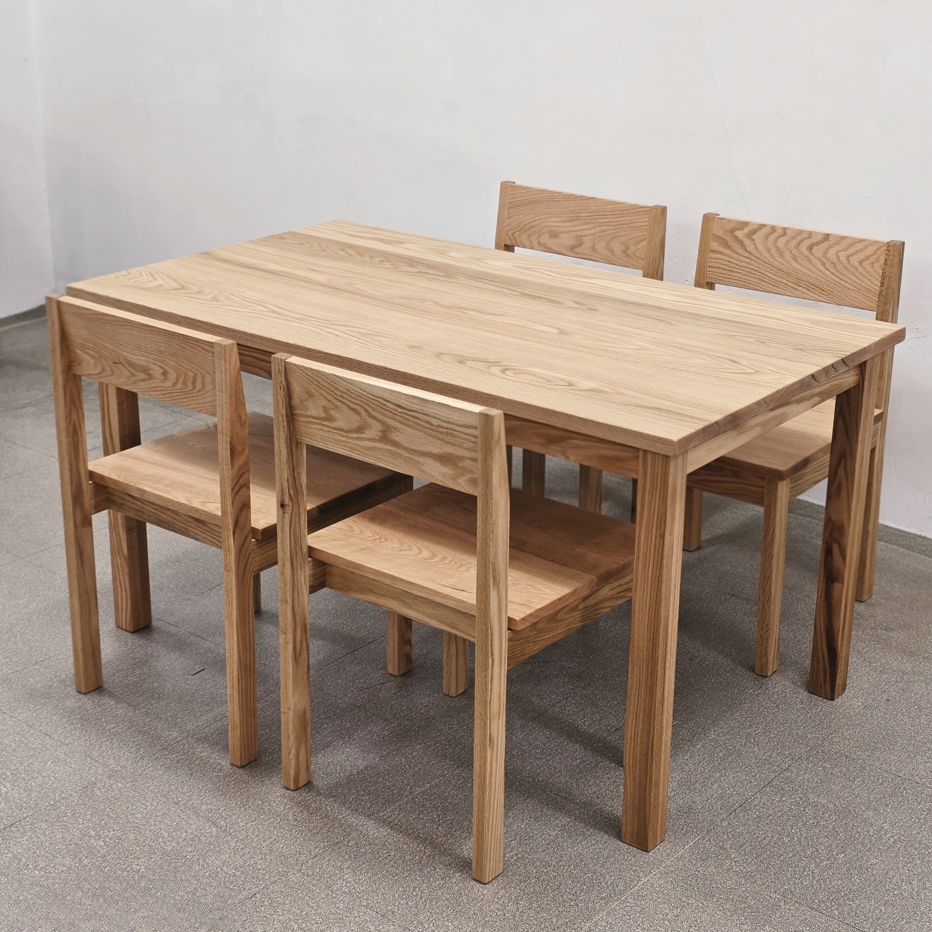 레드 오크 다이닝 세트 4 Red Oak Dining Set은 레드오크 원목 100%로 제작되었으며, 목재의 결, 색, 강성을 가장 아름답게 드러내는 방식으로 설계되었습니다. 4인 기준(1400 × 800 × 750mm) 넓은 방향 다리 간격: 1230mm 좁은 방향 다리 간격: 610mm 상판 마감: 오스모(Osmo) Top Oil 3028 Clear 의자 마감: LIBERON Finishing Oil -